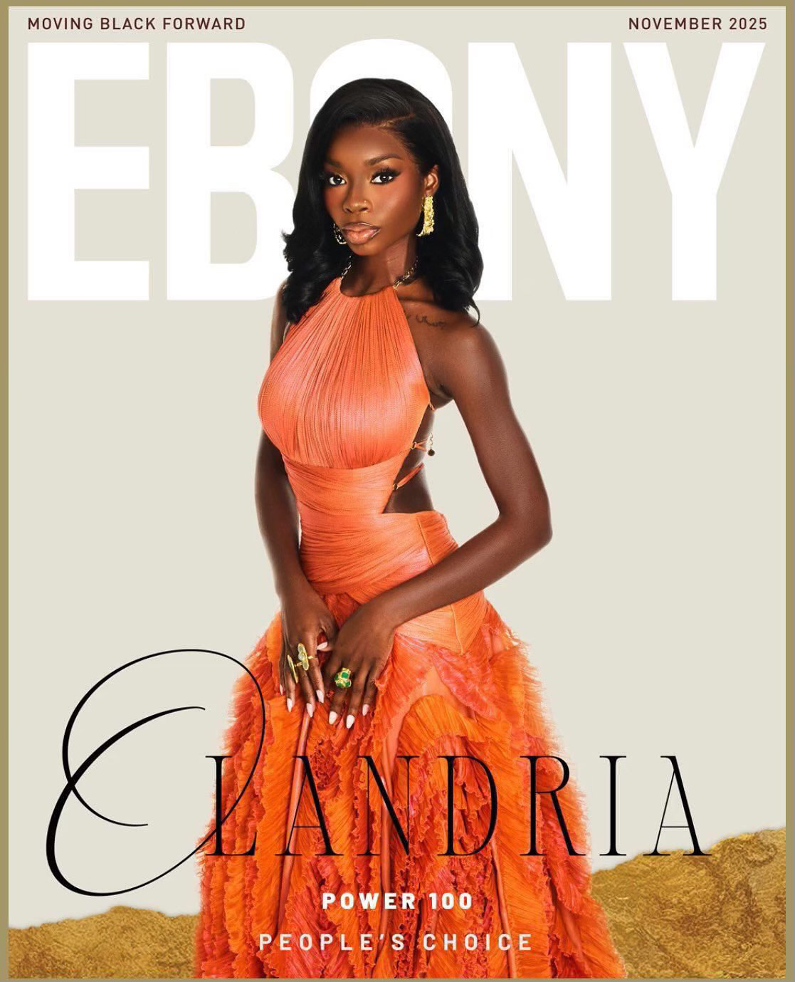 Olandria Carthen’s EBONY Power 100 magazine cover celebrates her undeniable influence and the impact she continues to make across fashion, media, and culture. Honored with the People’s Choice Award, Olandria’s appearance on the cover symbolizes the love and admiration she’s earned from a devoted community that sees itself reflected in her authenticity and grace. As a proud Tuskegee University alumna and advocate for representation, she embodies the spirit of modern excellence—bold, driven, and unapologetically herself. The EBONY Power 100 cover not only highlights her achievements but also marks her evolution into one of today’s most inspiring emerging voices, using her platform to empower others and redefine what it means to shine with purpose.