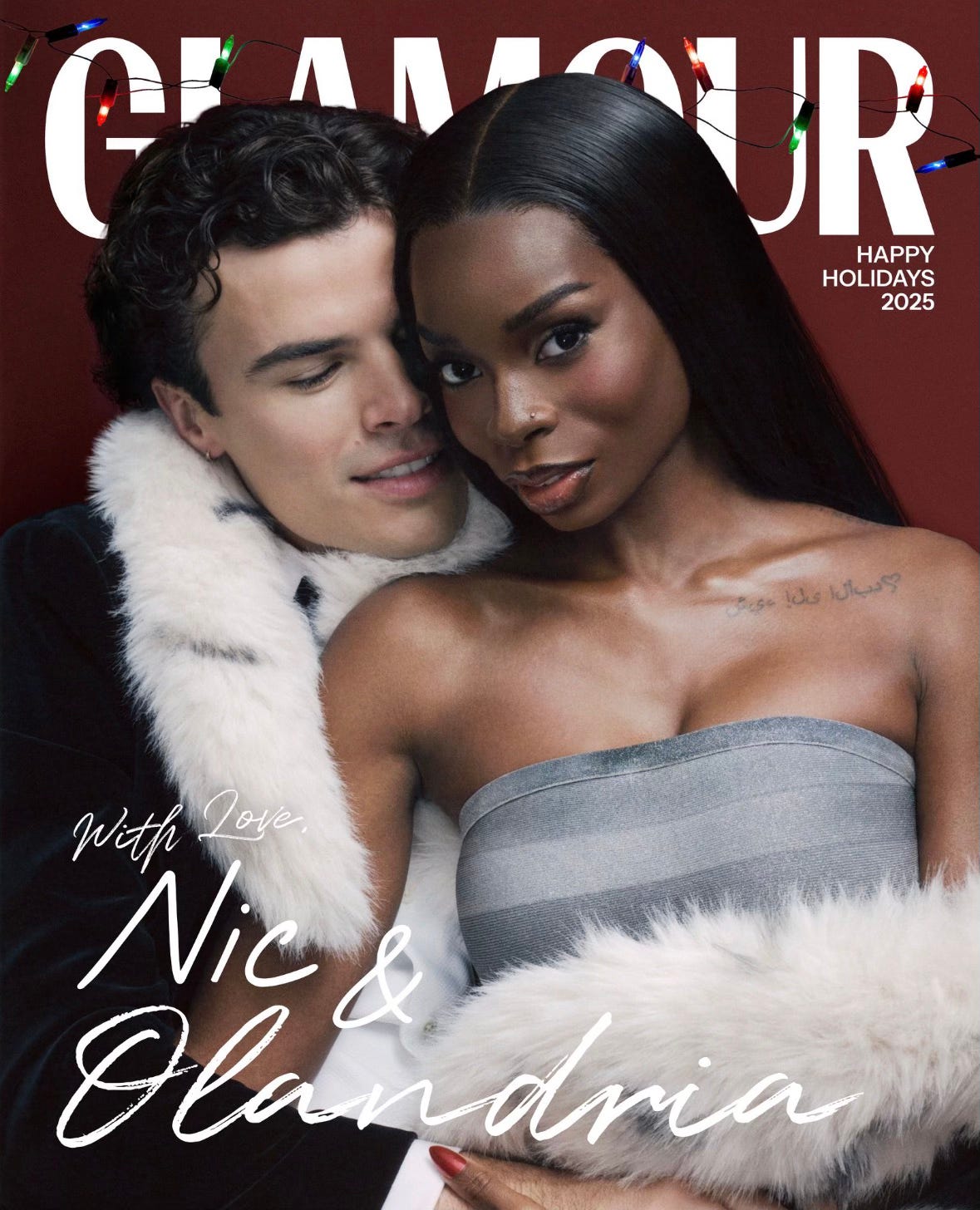 Olandria and Nic graced the cover of Glamour Magazine’s December issue, offering an intimate portrait of partnership, style, and shared vision. The cover story explores their relationship as both personal and creative, rooted in mutual respect, individuality, and a modern sense of elegance. Set within a winter-forward aesthetic, the feature reflects how their connection informs their presence, blending authenticity with elevated storytelling and closing the year with a statement that feels both timeless and deeply personal.